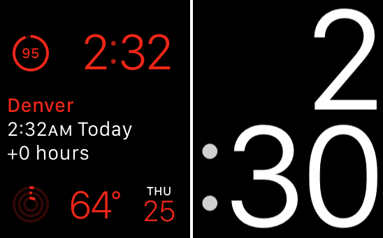 I have a selection of faces that I’ve been using in different contexts. I’m kind of fascinated by the idea of a mobile interface that changes based on temporal and geographic context. Obviously, one has to change faces manually right now, but even having the ability to do so is great, and I think it would be an interesting addition if the watch could someday be configured to automatically change faces depending on where you are or what time of day it is.