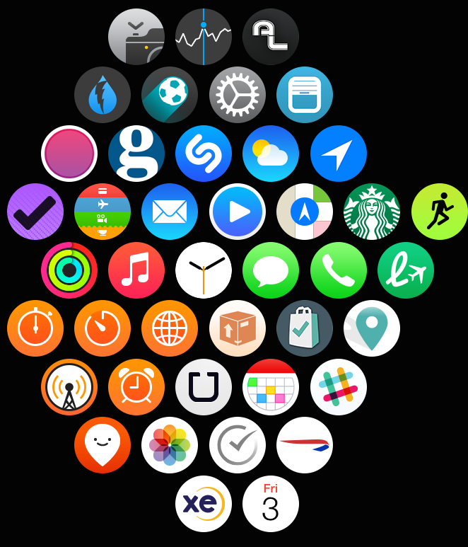 I try most, though i’m very specific with notifications on my phone already so it’s very similar. I get text message notifications, VIP email notifications, weather updates from Dark Sky, my activity tracker updates me every 6 hours (and for each ‘stand up and move’ reminder) Passbook, mainly for flights and of course to remind me i’m near a Starbucks and Parcel so I get updates on deliveries.