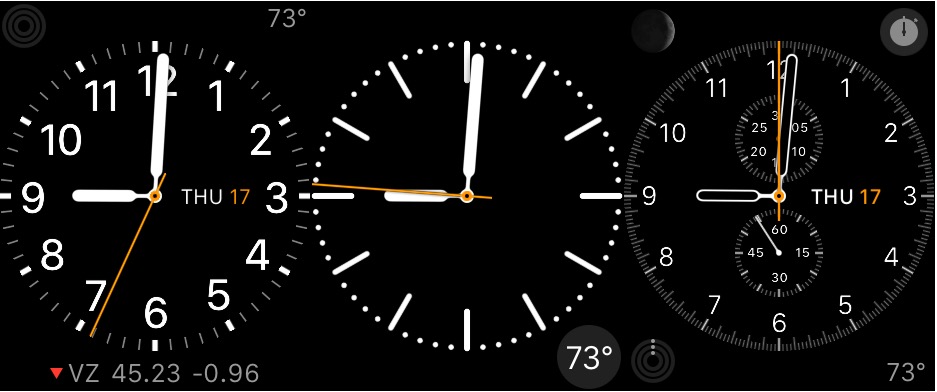 The different watch faces really change on mood, however those three complication are a must for me. I’m really into trading on the market, and having my most recently viewed stock on my watch face is one of the most useful things my watch does. Weather and Activity are nice to have around, and with the complications, I find myself rarely going in their respective apps.